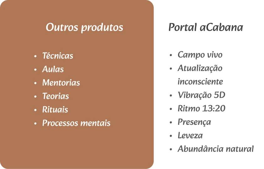 Elas já ajudaram vidas que passaram por cursos, terapias, retiros e técnicas, mas que ainda não sentiam a transformação na matéria. O Portal aCabana se tornou o lugar onde essas almas finalmente conseguem viver aquilo que sempre souberam: que a abundância é natural, que o corpo sabe e que a vida responde quando a vibração muda.